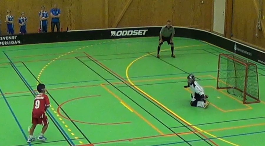 Med två och en halv minut kvar så frispelade Filip fram Tobias som i friläge fick ett slag på klubban och vi fick en straff.